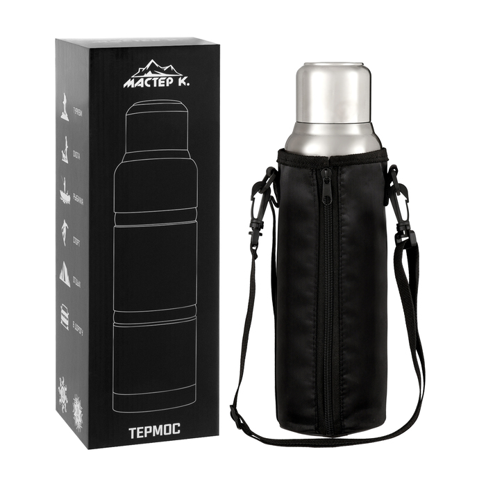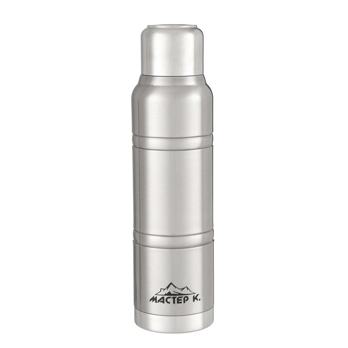 Термос, 1.5 л, Warm Мастер К.,с кружкой,с ситечком,сохраняет тепло 24ч, хром,чехол в подарок