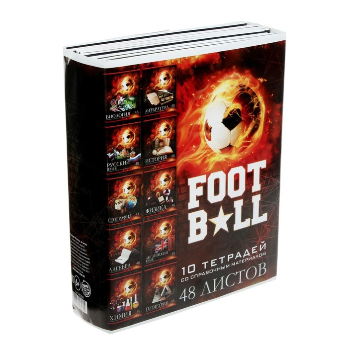 Комплект предметных тетрадей 48 листов "Футбол", 10 предметов, со справочным материалом, обложка мелованный картон, УФ-лак, блок офсет