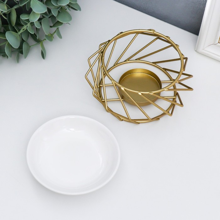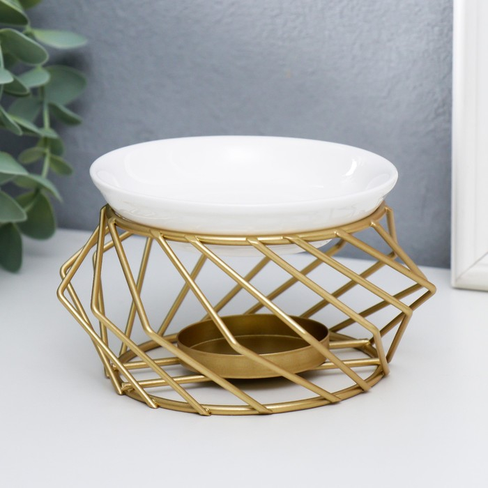 Аромалампа металл, керамика "Геометрия плетение" золото 7,5х13х13 см