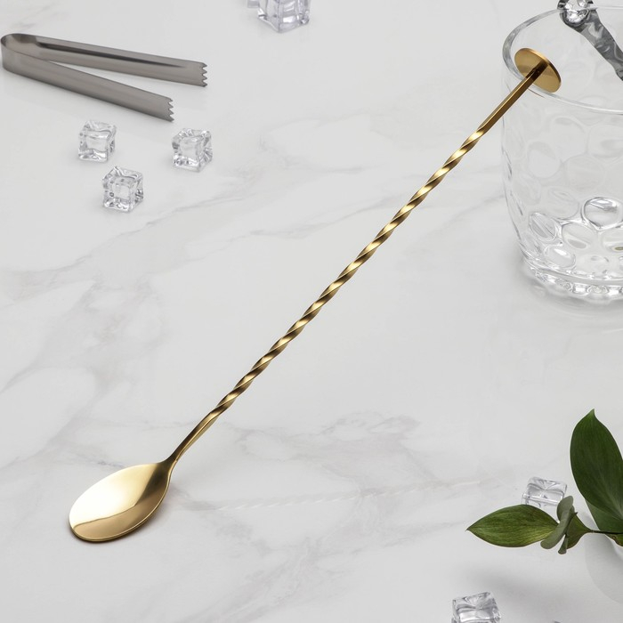Ложка барная с мадлером из нержавеющей стали, длина 32 см, цвет золотой