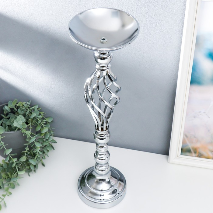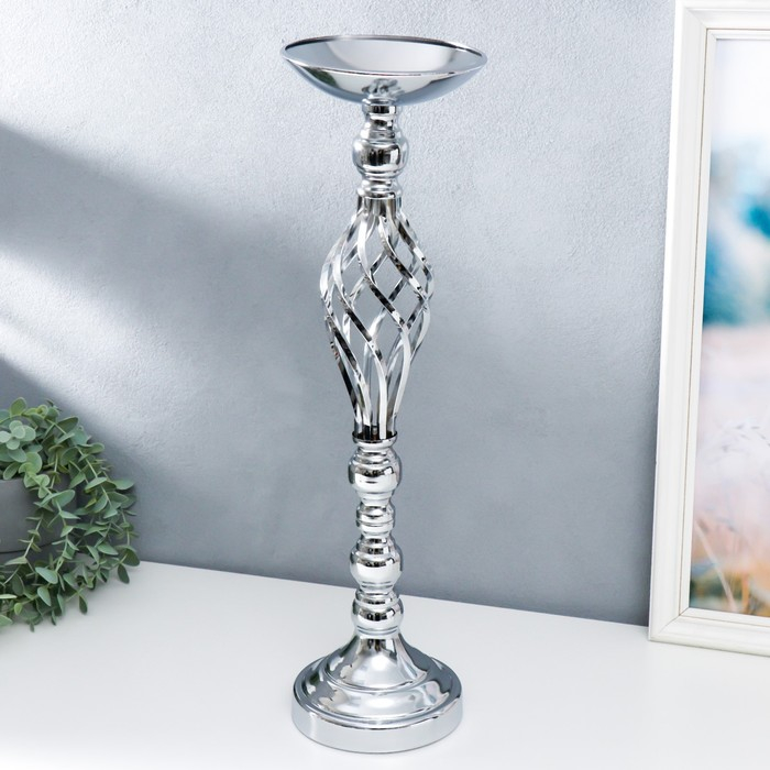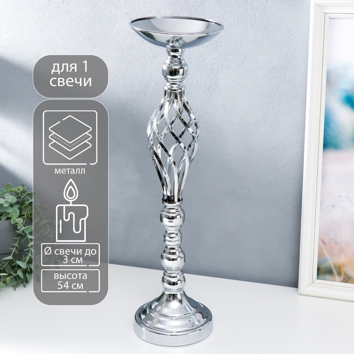 Подсвечник металл на 1 свечу "Сплетение" серебро 54х15х15 см