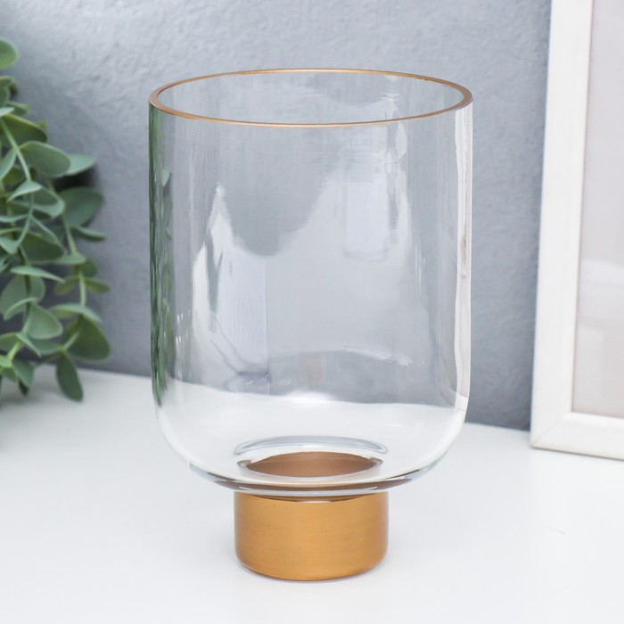 Подсвечник стекло на 1 свечу "Стакан на ножке" прозрачный и золото 15,8х10,5х10,5 см