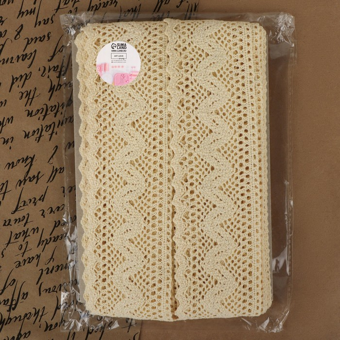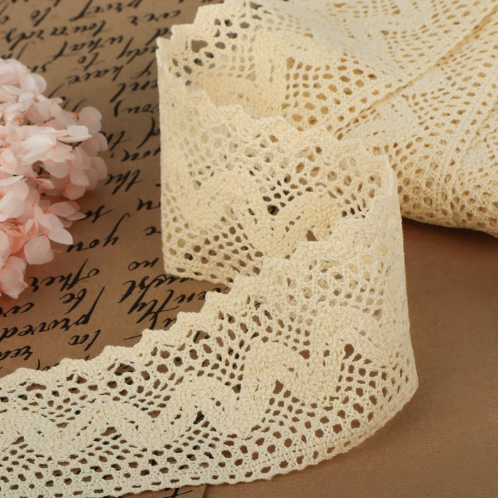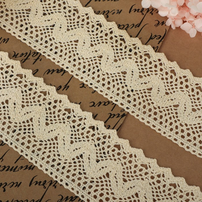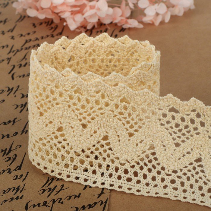 Кружево вязаное, 60 мм × 10 ± 1 м, цвет бежевый