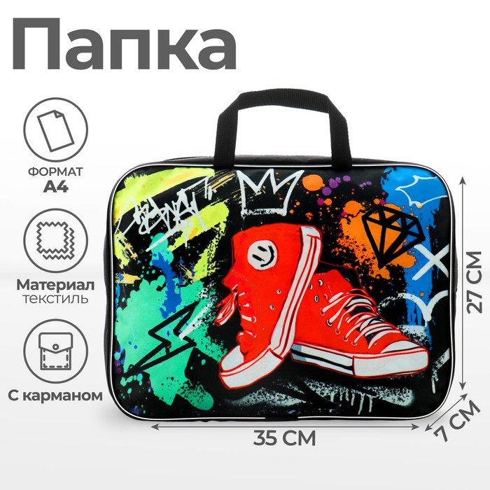 Папка с ручками текстильная А4, 350 х 270 х 70 мм, Calligrata "Кеды"