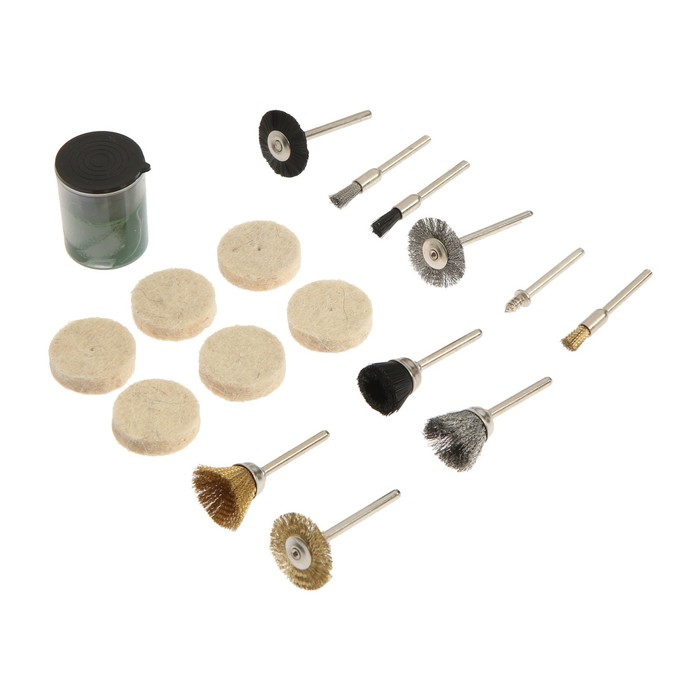 Набор мини-насадок для гравера ТУНДРА, щетки, полировальные круги, паста, 3.2 мм, 17 шт.