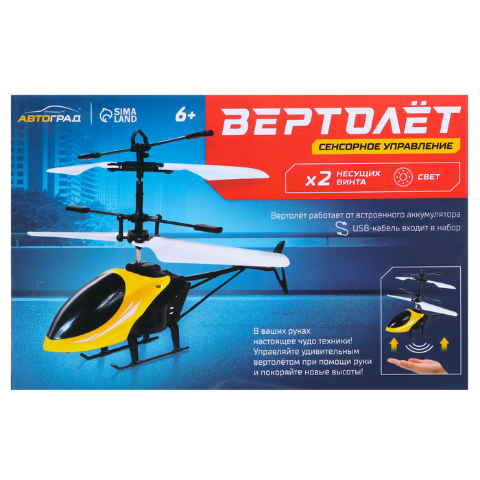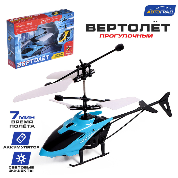 С вертолётом «Прогулочный» ребёнок станет профессионалом пилотажа. Для управления этой авиамоделью не нужен пульт! Встроенный сенсорный датчик позволяет управлять вертолётом с помощью руки.