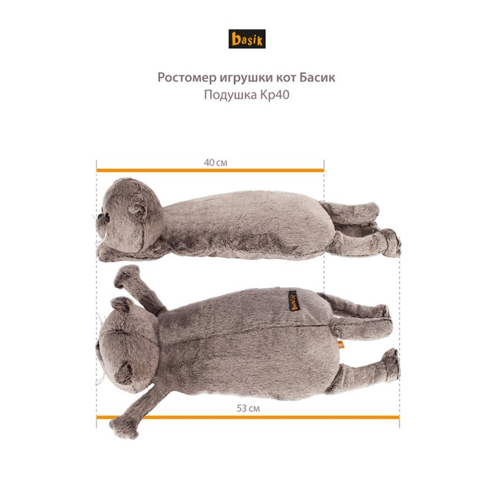 Мягкая игрушка-подушка «Кот», цвет серый, 40 см