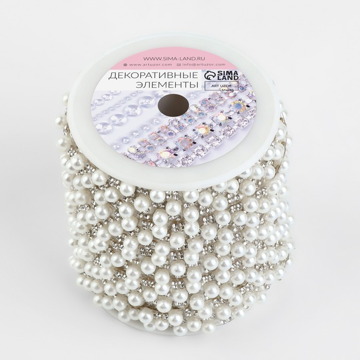 Стразы и бусины термоклеевые, ширина - 10 мм, 4,5 ± 0,5 м, цвет айвори