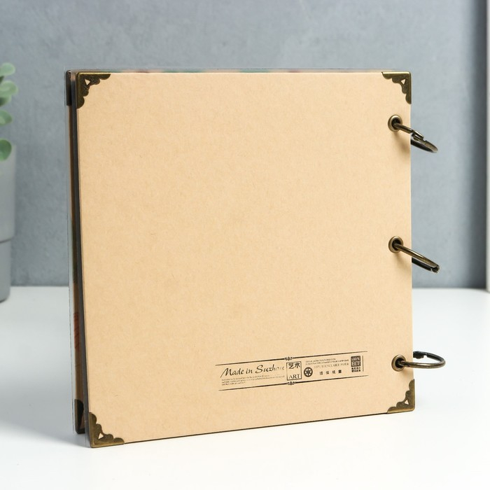 Фотоальбом на кольцах 30 листов "Нарисованные цветы" чёрные листы 18,5х18,5 см