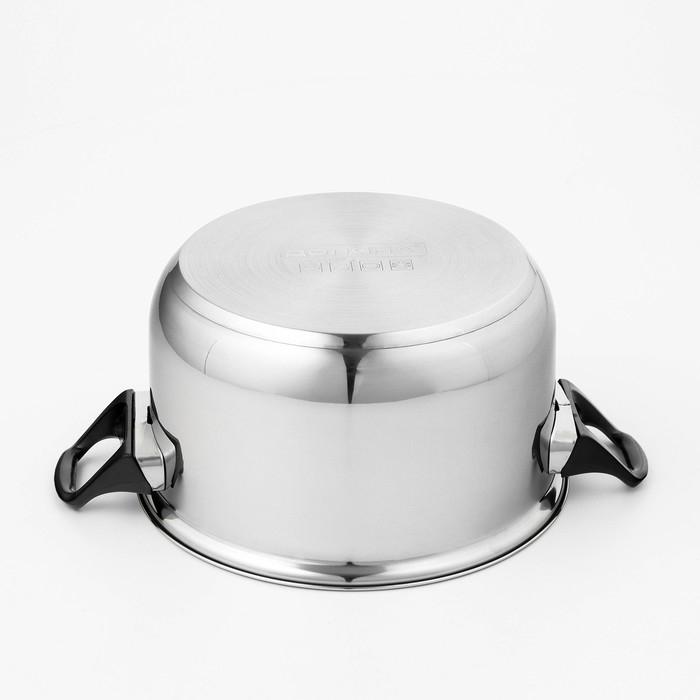 Кастрюля из нержавеющей стали Доляна «Чёрная ночь», 3 л, с крышкой имеет качественное трёхслойное капсулированное дно толщиной 1,1 мм (0,3 мм сталь/ 0,5 мм алюминий/ 0,3 мм сталь) и высокие стенки (толщина 0,3 мм). Они обеспечивают оптимальное распределение тепла по всей поверхности кастрюли, что препятствует пригоранию еды в процессе готовки. Используйте минимум масла и жира, сохраняйте максимальное количество полезных веществ и натуральный вкус продуктов.