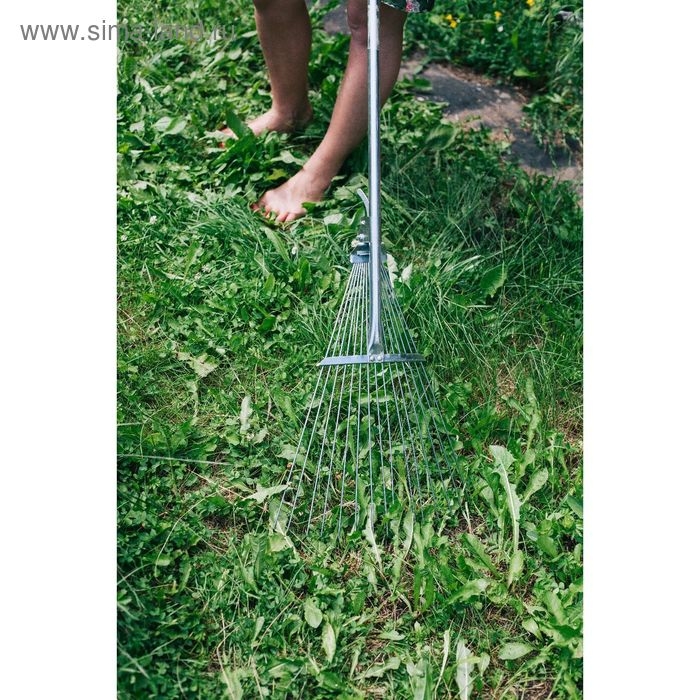 Грабли веерные, проволочные, 15 зубцов, металл, раздвижные, металлический черенок, Greengo