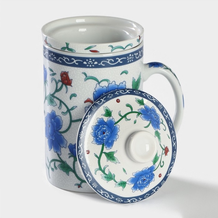 Кружка керамическая с крышкой и ситом «Цветение роз», 300 мл