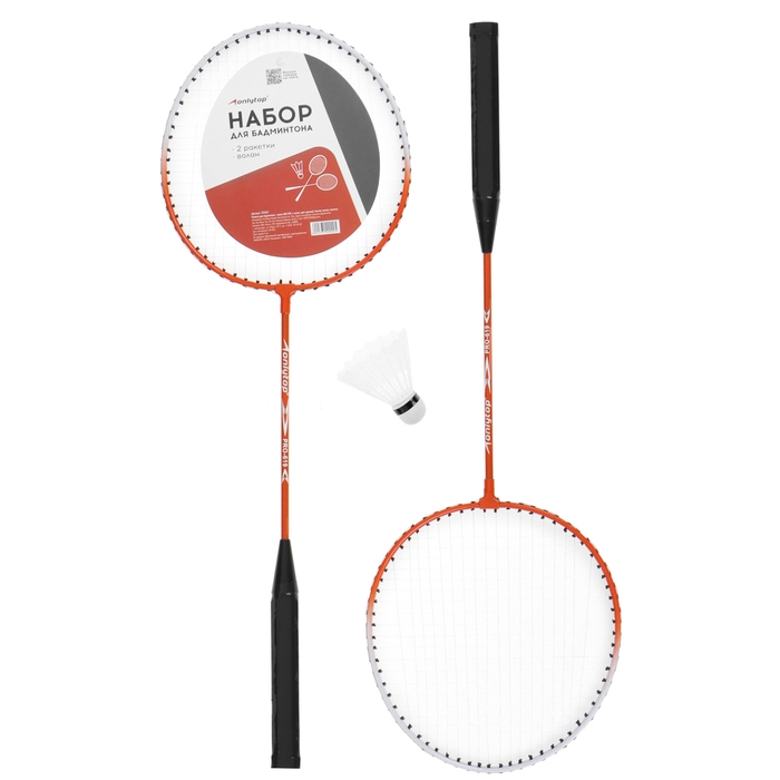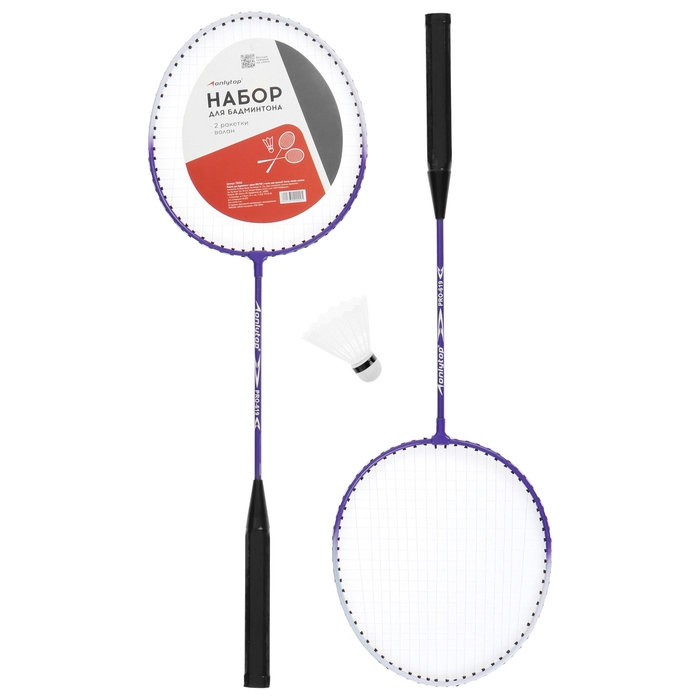Набор для бадминтона ONLYTOP: 2 ракетки, 2 волана, мяч, цвета МИКС