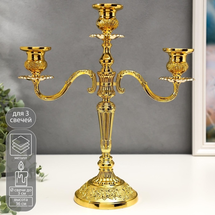 Изящный подсвечник на три свечи привнесет в интерьер вашего дома манящую атмосферу романтики и неповторимое веяние старины – каменных особняков, увитых плющом, мягких бархатных портьер и подрагивающих огоньков свечей, рождающих на стенах причудливые зыбкие тени. Простой и элегантный подсвечник украсит собой гостиную, спальню, библиотеку и позволит вам получать еще больше удовольствия от уютных домашних вечеров.