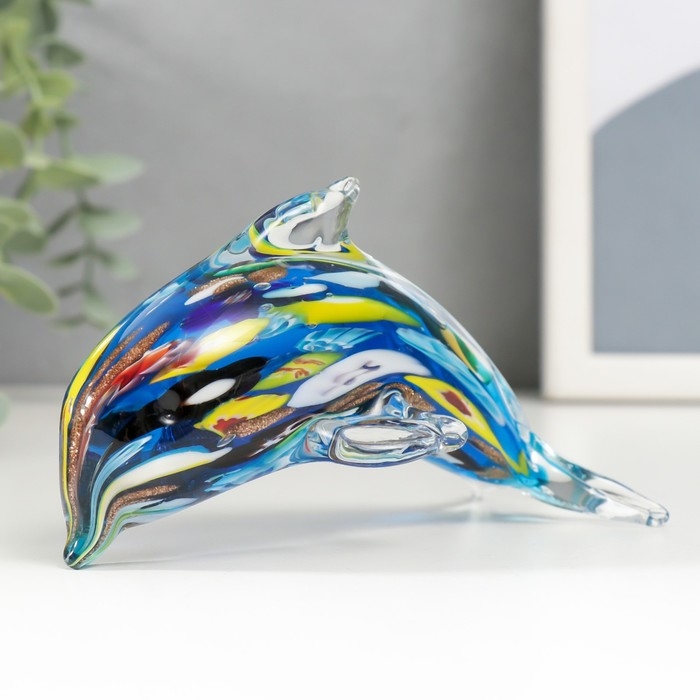 Сувенир стекло "Дельфин многоцветный" под муранское стекло МИКС 8,5х12 см