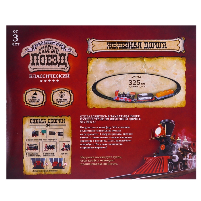 Железная дорога «Паровоз», со светозвуковыми эффектами, протяжённость пути 3,25 м, МИКС