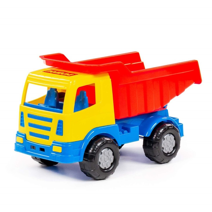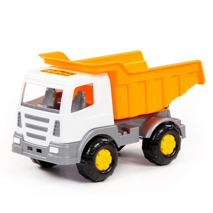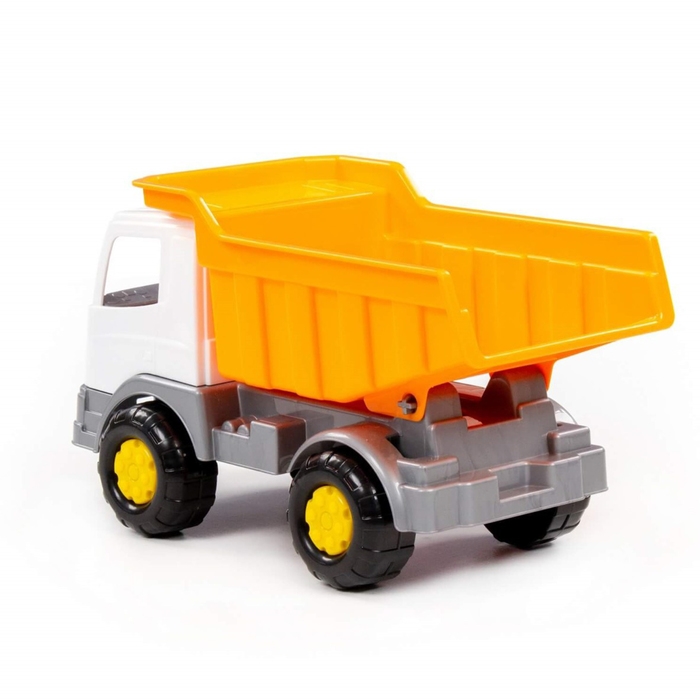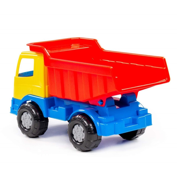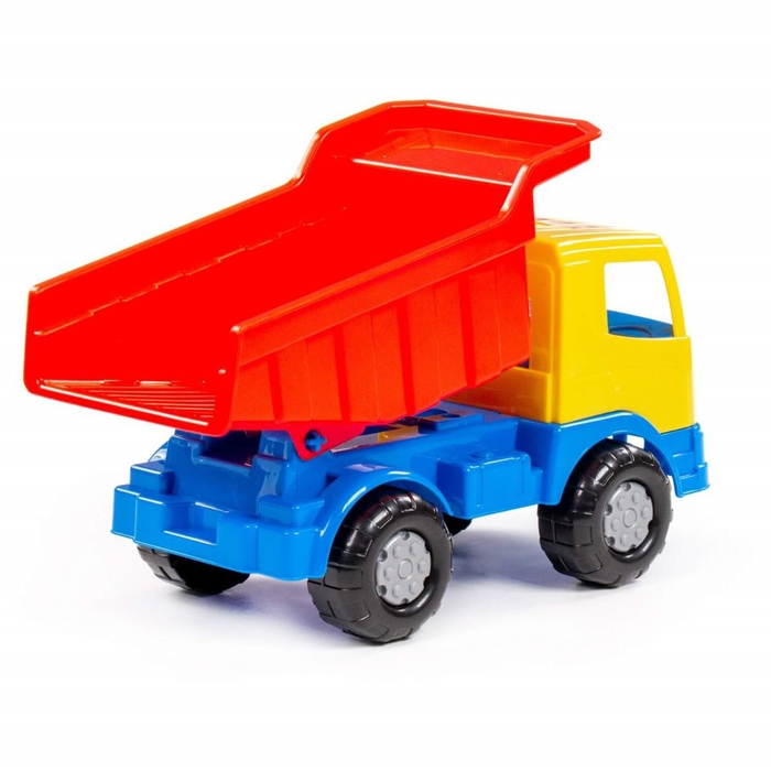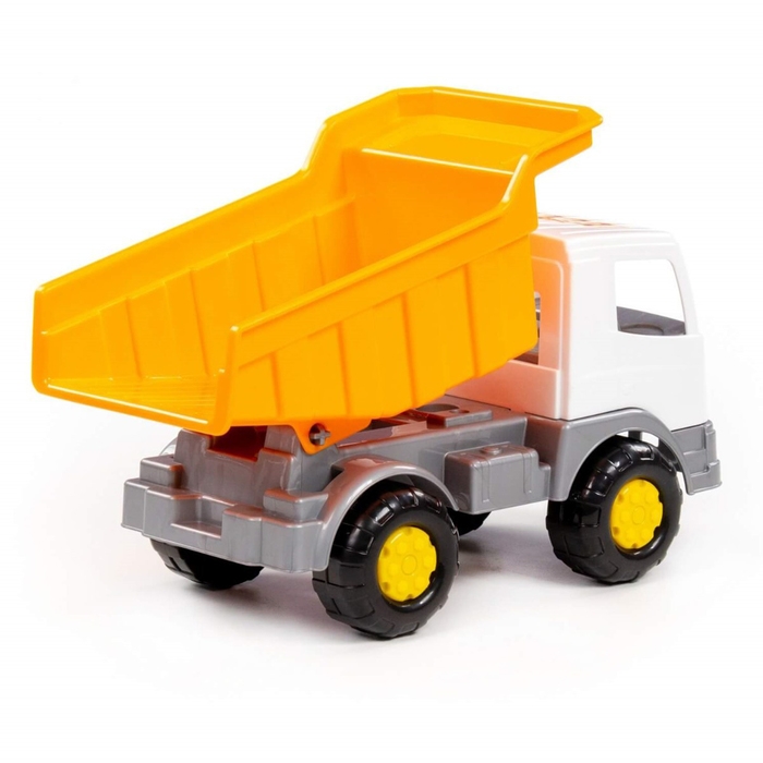 Самосвал — самая популярная игрушка среди мальчиков. Конструкция игрушки выполнена из высококачественного прочного пластика, а также лишена острых углов. Она оснащена вместительным откидным кузовом, в который можно засыпать песок или камушки.