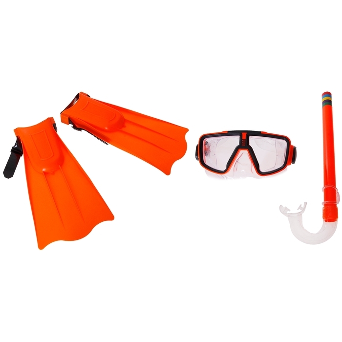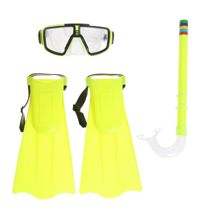 Набор для плавания детский ONLYTOP: маска, трубка, ласты безразмерные, цвета МИКС