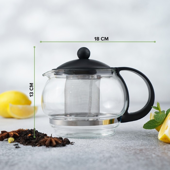 Чайник стеклянный заварочный «Вдохновение», 850 мл, с металлическим ситом, цвет чёрный