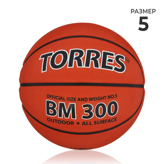 Баскетбольный мяч TORRES BM300, B00015, клееный, 8 панелей, р. 5, резина