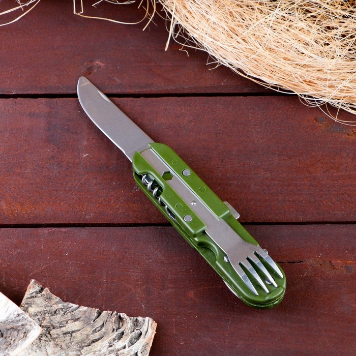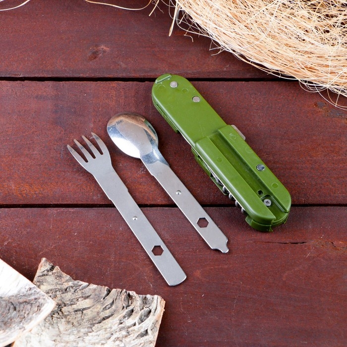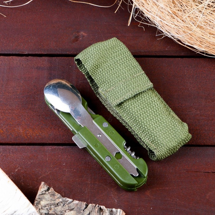 Набор туриста "Лесник" 5в1 в чехле: штопор, открывалка, нож, ложка, вилка
