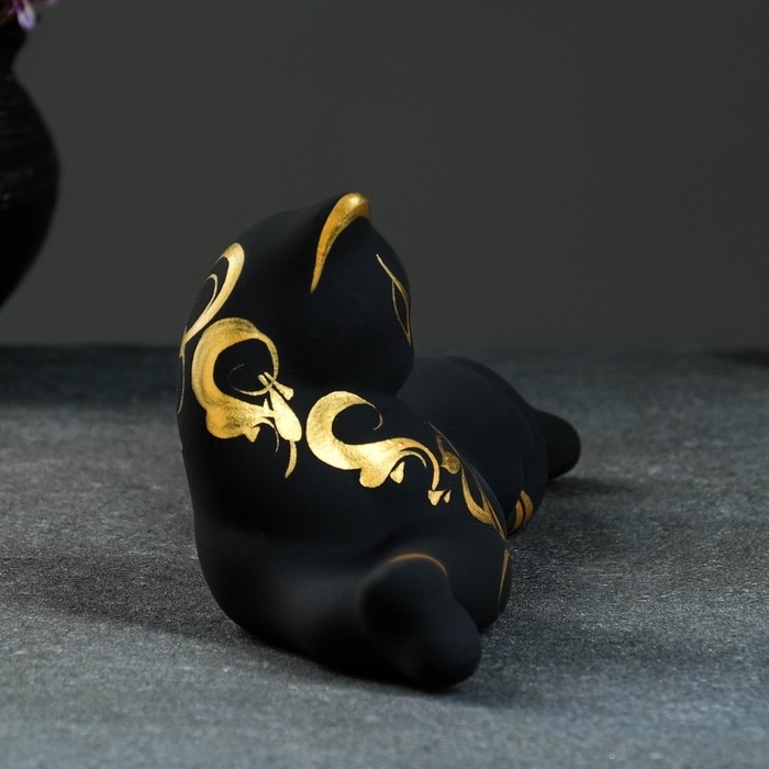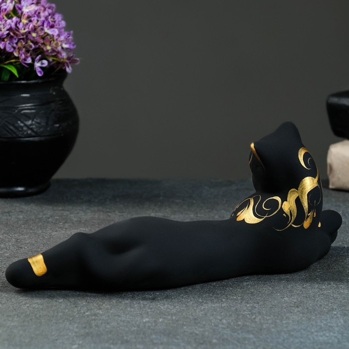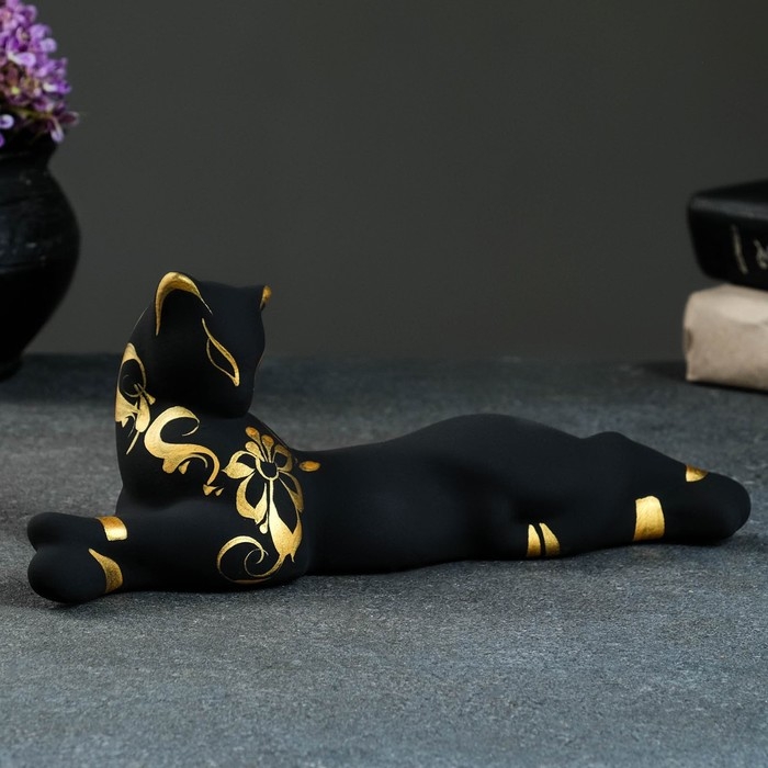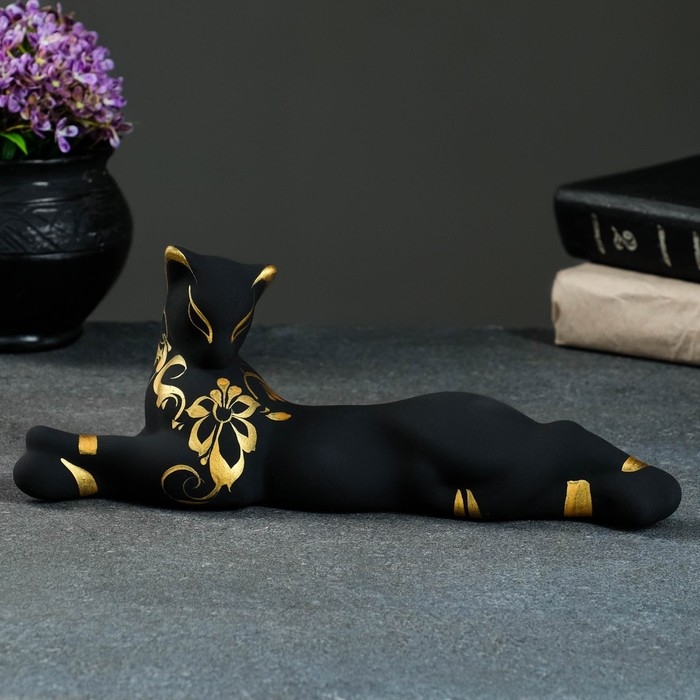 Фигура "Кошка Багира лежачая" роспись черная 7х27х10см