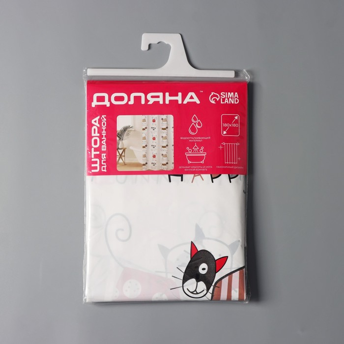 Штора для ванны Доляна «Коты», 180×180 см, EVA