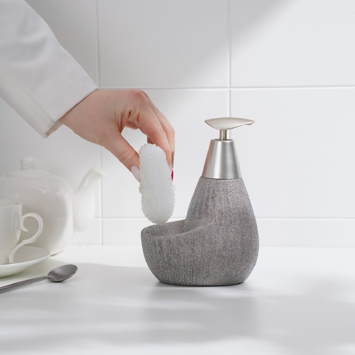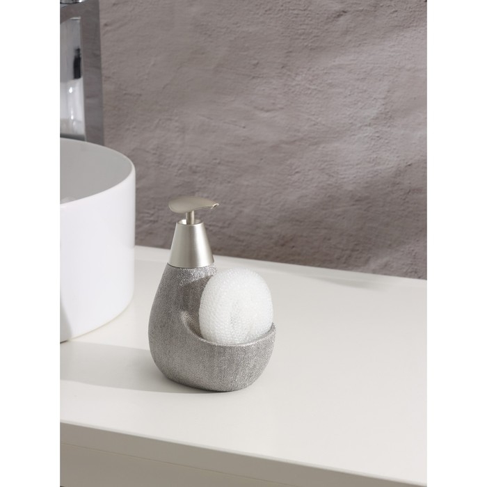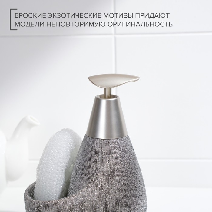 Дозатор для моющего средства с подставкой для губки Доляна «Африка, 350 мл, цвет серый
