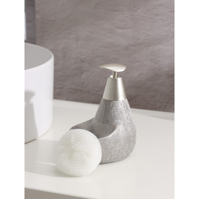 Дозатор для моющего средства с подставкой для губки Доляна, губка в комплекте, 385 мл, цвет белый
