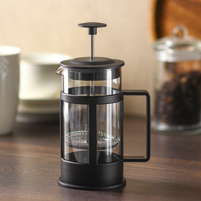 Чайник заварочный френч - пресс Доляна «Классика», 350 мл, стекло, цвет чёрный