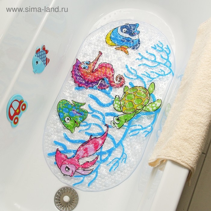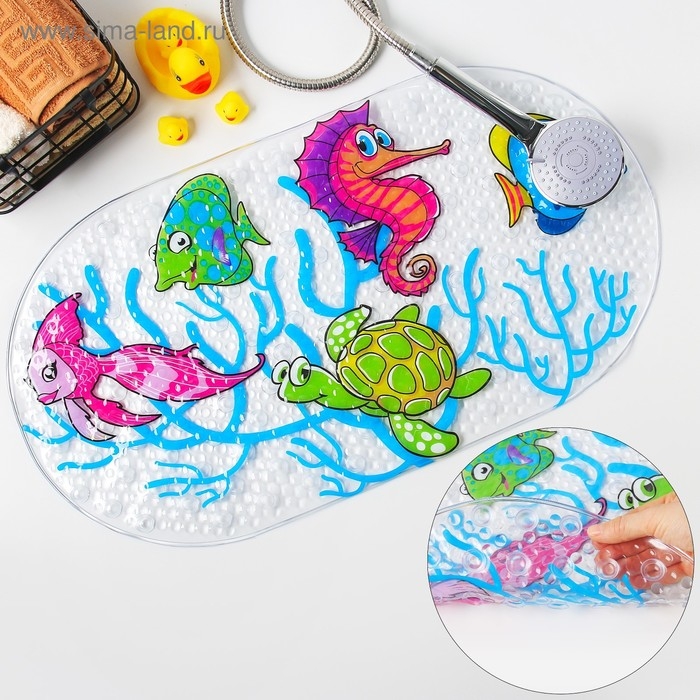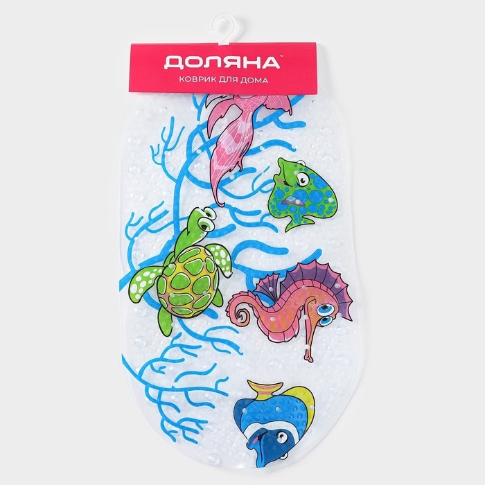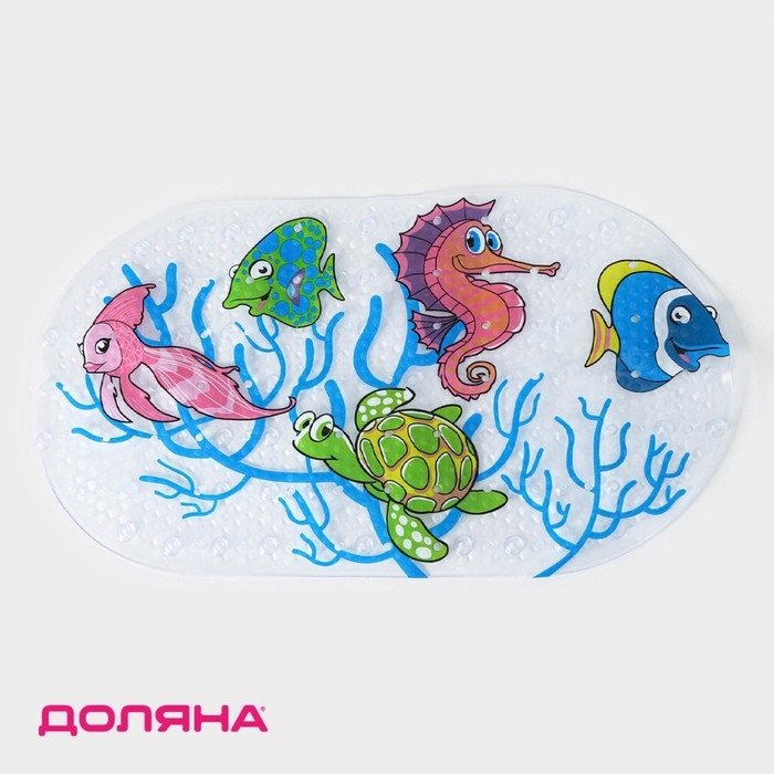 Коврик противоскользящий в ванну на присосках Доляна «Морские жители», 36×68 см