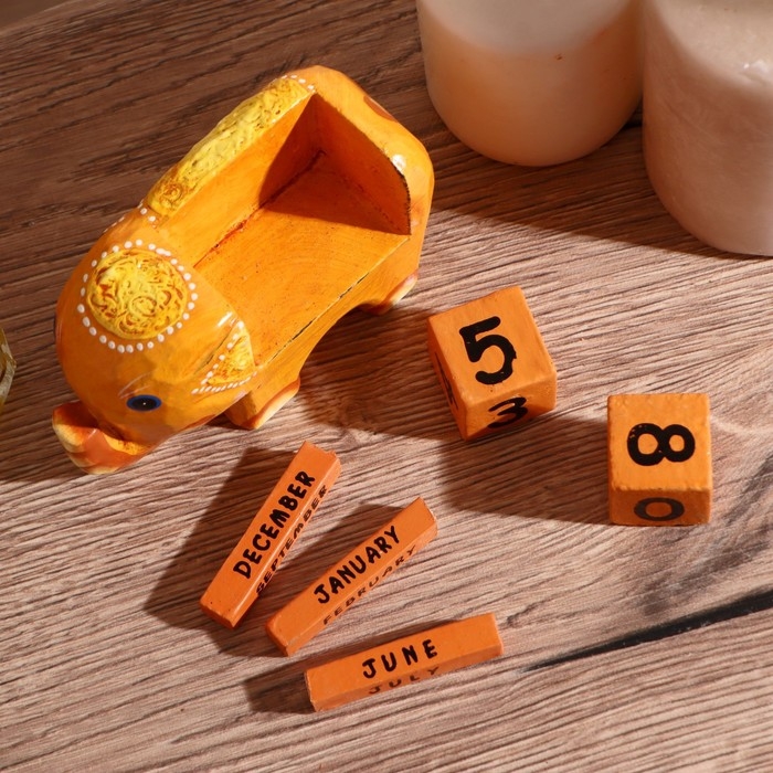 Деревянный календарь с кубиками "Слоник" 11х4,5х6,6 см МИКС