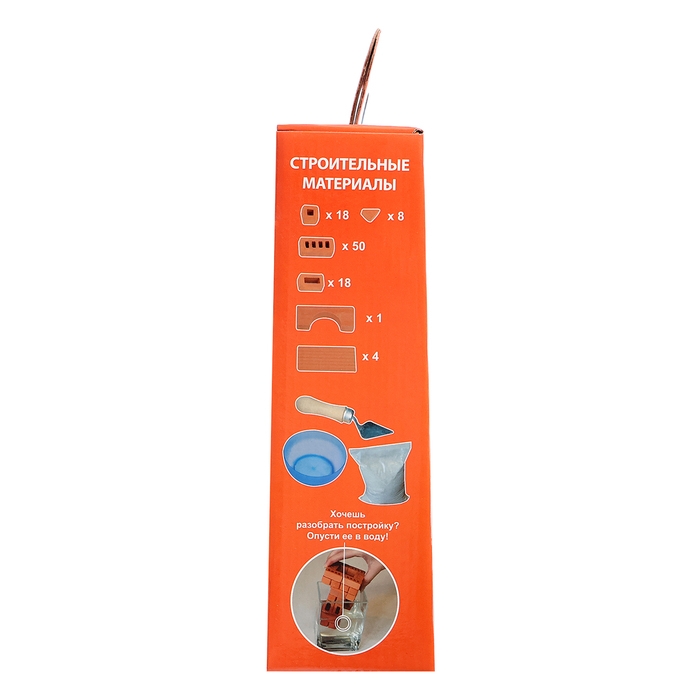 Специальный мастерок, входящий в комплект, поможет удобно нанести цемент на детали. Он точно такой, как у взрослых строителей, только меньшего размера.