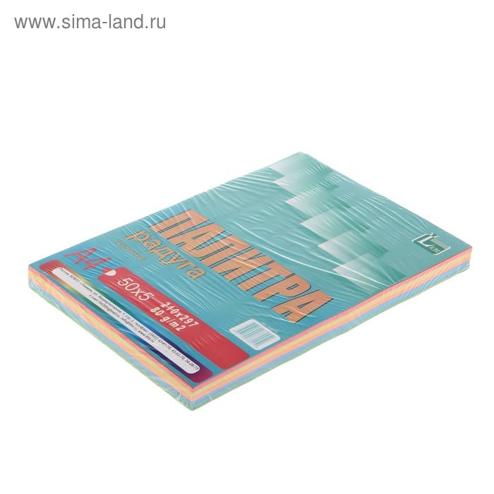 Бумага цветная А4, 250 листов "Палитра радуга" Интенсив, 5 цветов, 80 г/м²