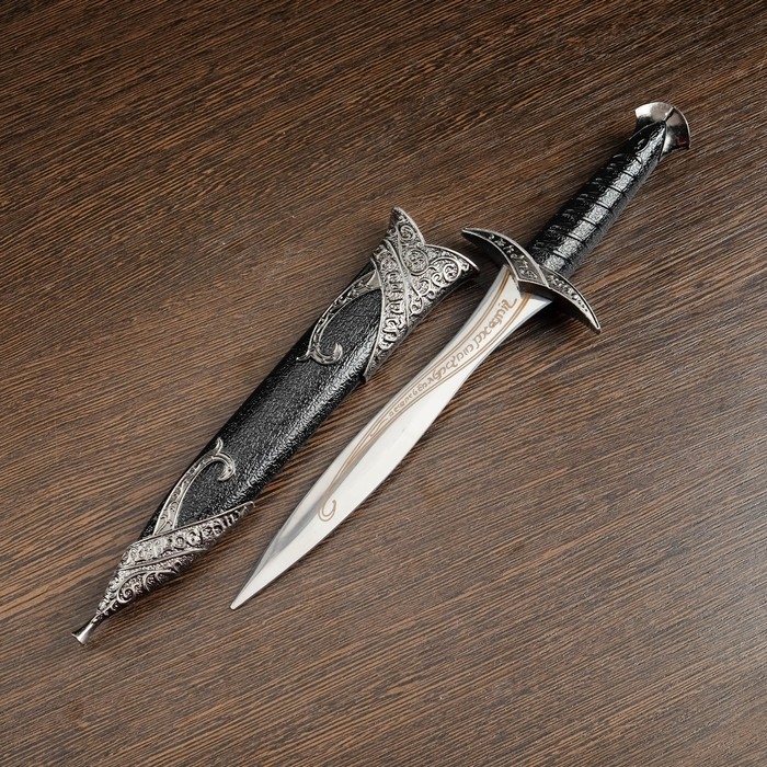 Многие мужчины вместо банальных безделушек предпочитают получить в подарок атрибут, воплощающий их силу, мужество и отвагу. В этом случае оригинальным и необычном подарком может стать сувенирный меч "Жало", лезвие с изгибом на ножнах витые узоры, чёрный/серебро, 28см.