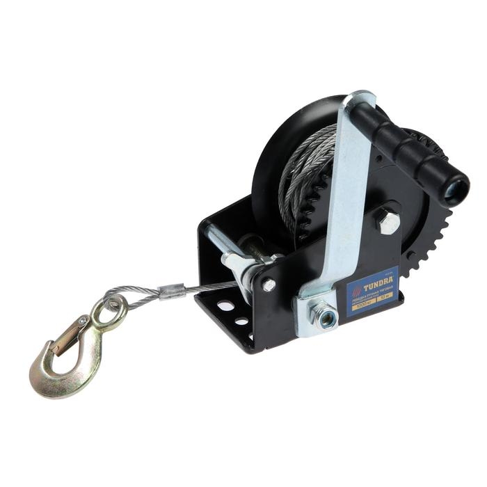 Лебедка ручная барабанная тяговая ТУНДРА, 1000 кг, металлический трос 10 метров