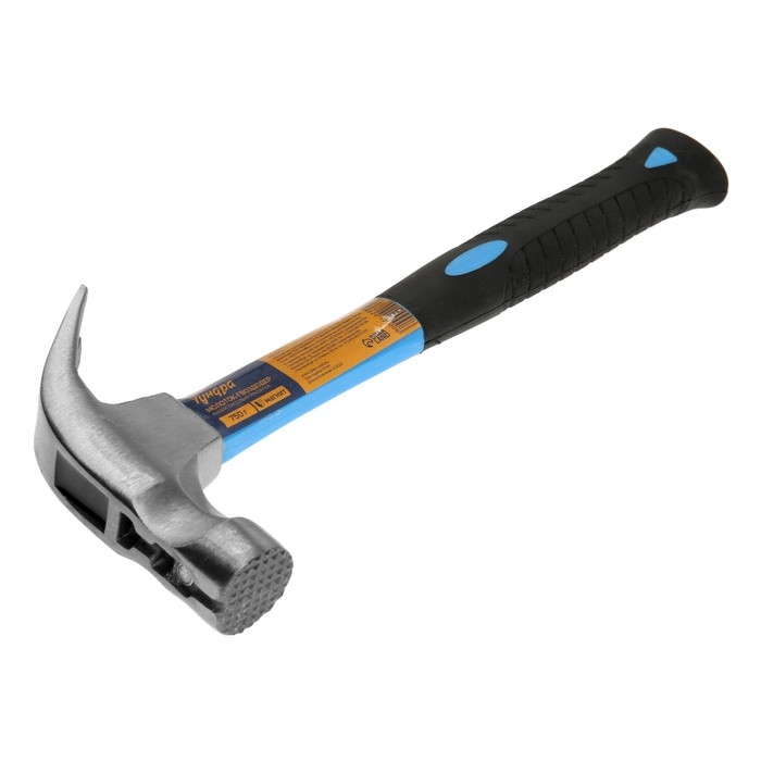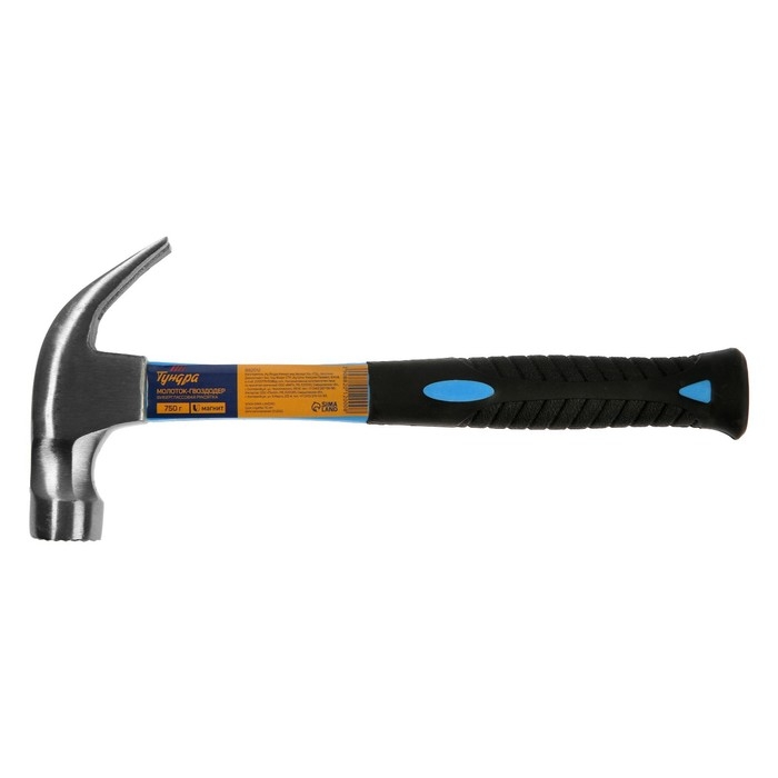 Молоток-гвоздодер ТУНДРА, боек с магнитом, фиберглассовая 2К рукоятка, 750 г