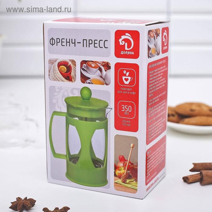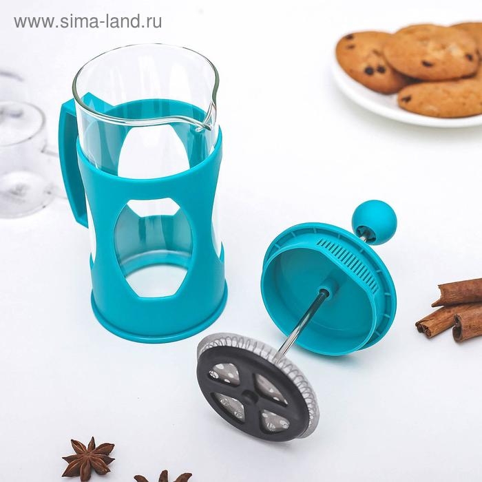 Чайник заварочный френч - пресс Доляна «Комплимент», 350 мл, стекло, цвет бирюзовый
