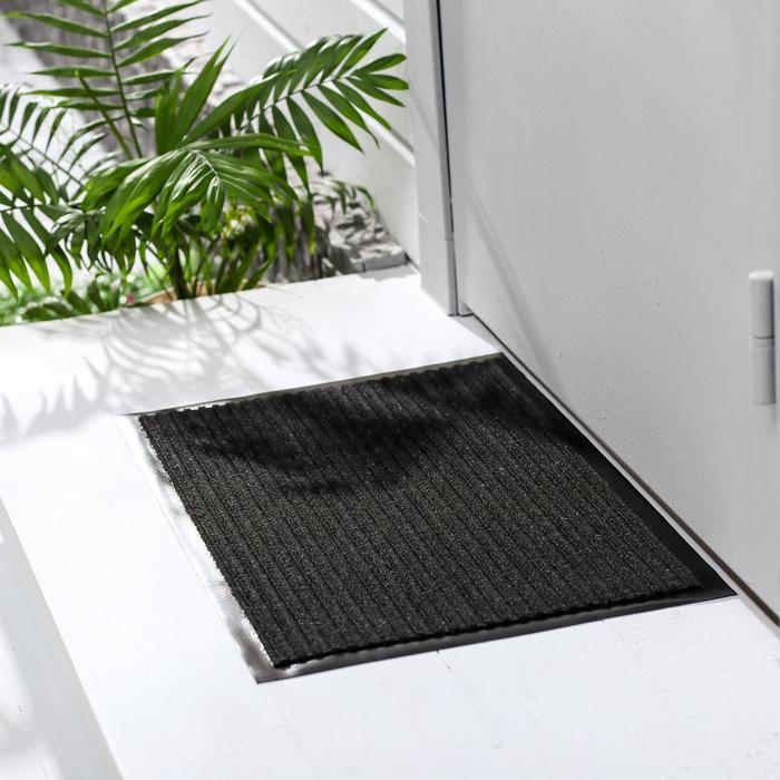 Коврик придверный влаговпитывающий, ребристый, «Стандарт», 60×90 см, цвет чёрный