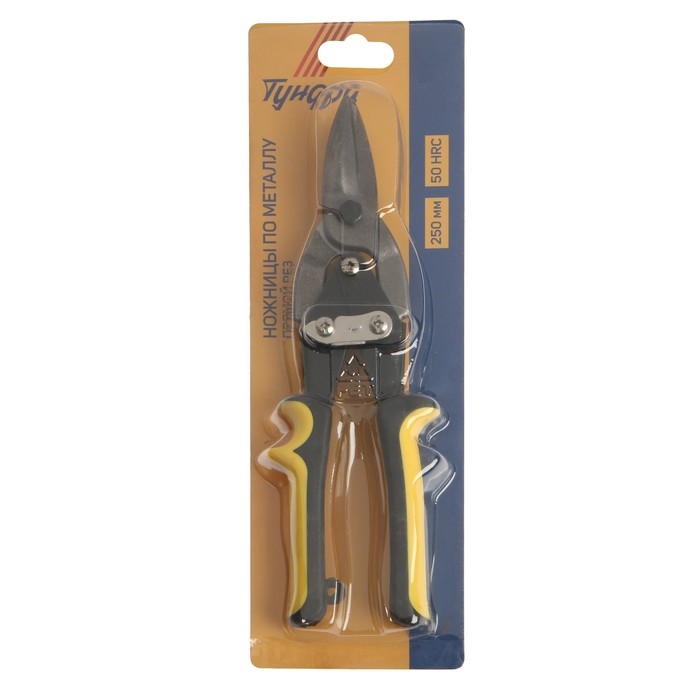 Ножницы по металлу ТУНДРА, 2К рукоятки, прямой рез, 250 мм