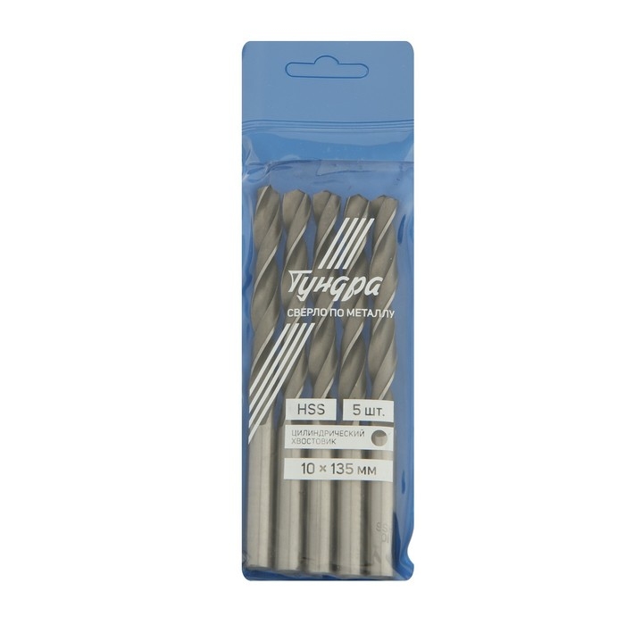 Сверло по металлу ТУНДРА, HSS, цилиндрический хвостовик, 10 х 135 мм, 5 шт.