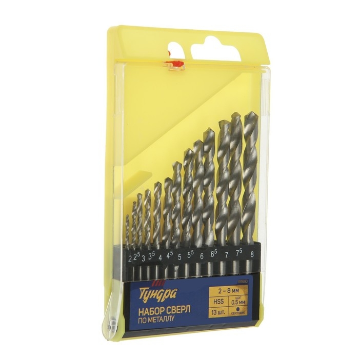 Набор сверл по металлу ТУНДРА, HSS, цилиндрический хвост., 2 - 8 мм (через 0.5 мм), 13 шт.