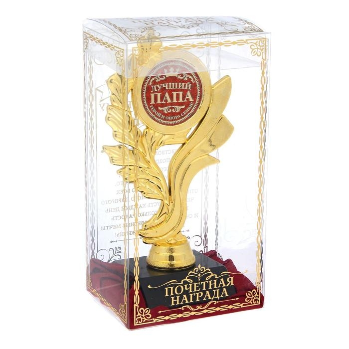 Кубок «Лучший папа», наградная фигура, золото, пластик, 17,5 х 9 х 6,3 см. станет самым лучшим подарком! Эта награда для самых замечательных людей, её нежные лавровые ветки передают всю глубину и теплоту ваших чувств! Он выполнен из пластика, покрыт золотой краской, дополнен яркой цветной бляшкой, из бумаги с голографией. Прозрачная пластиковая коробка с тиснением прекрасно дополняет кубок, а с обратной стороны вы найдёте тёплые слова и пожелания для вашего адресата.