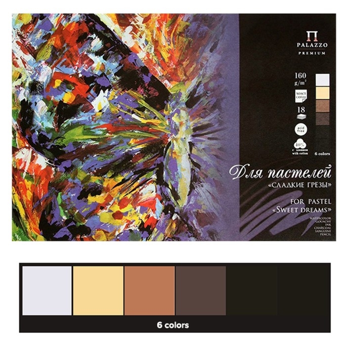 Замечательно подходит для художественных техник, таких как пастель, масляная пастель, мел, карандаш или уголь, сангина. Планшет состоит из 18 листов и 6 цветов пастельной бумаги с жесткой подложкой из переплетного картона. Внутренний блок для удобства проклеен с одной стороны по корешку. Бумага внутреннего блока имеет плотность 160 г/м2, состоит из 40 % хлопкового волокна и имеет тиснение "Холст" с одной стороны, как все импортные аналоги, предназначенные для пастельных работ. Каждое изделие упаковано в термоусадочную пленку.