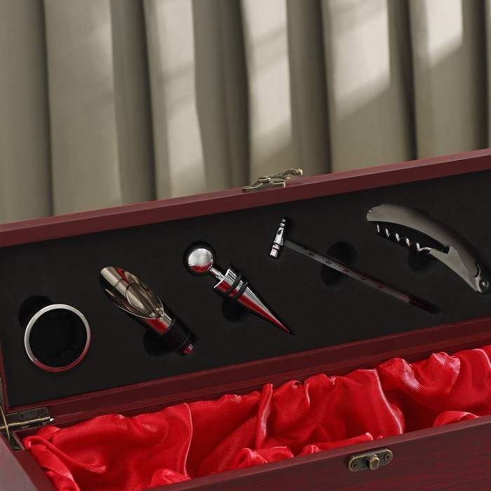 Набор для вина Доляна «Ла-Манш», 6 предметов: кейс для бутылки, каплеуловитель, кольцо, штопор, термометр, пробка