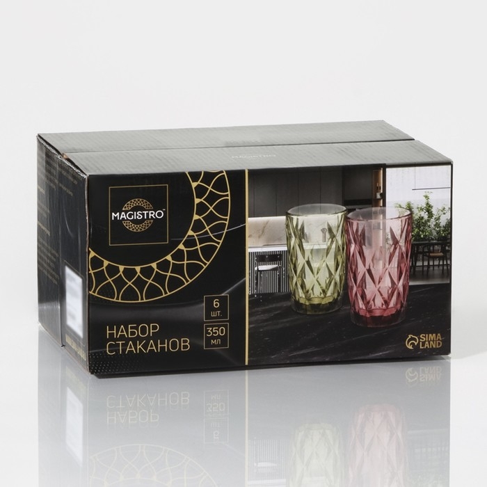 Набор стаканов стеклянных Magistro «Круиз», 350 мл, 8×12,5 см, 6 шт, цвет синий