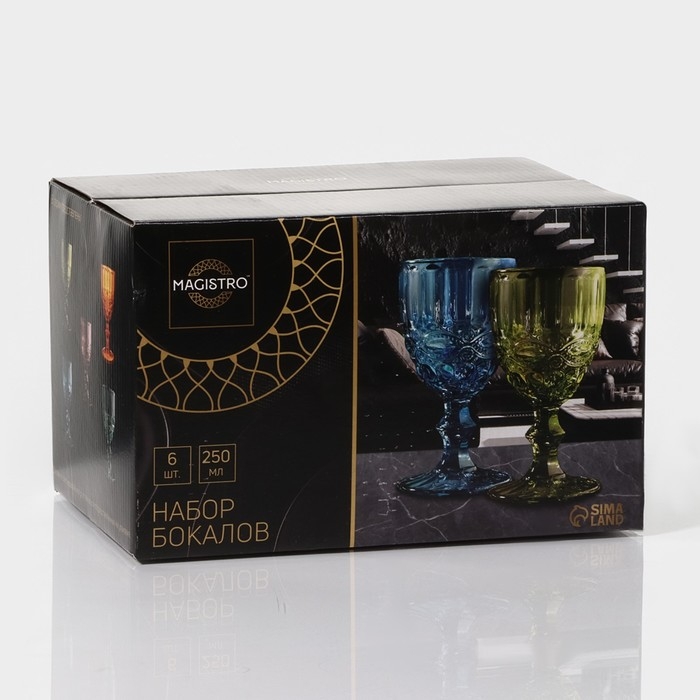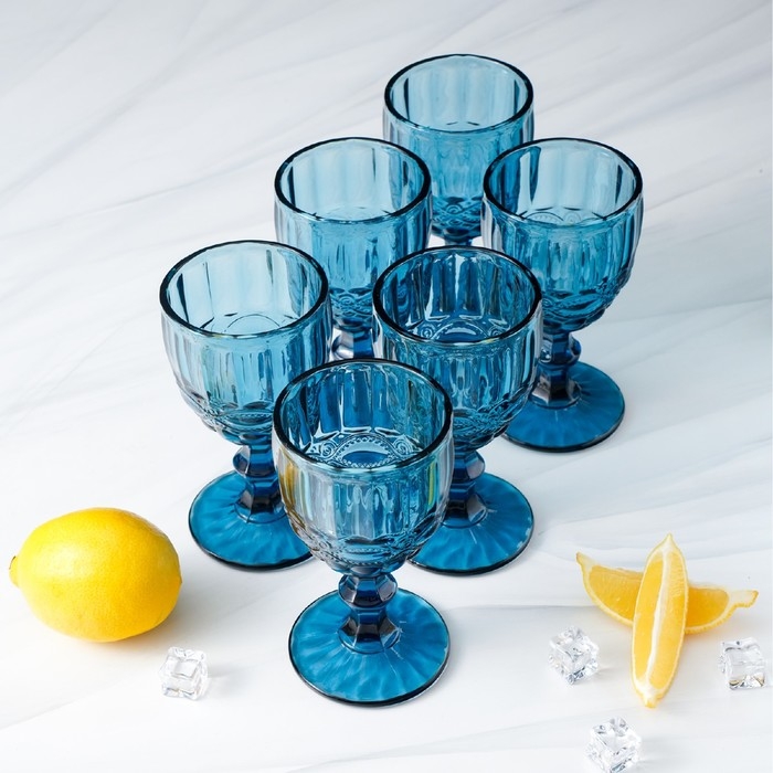 Набор бокалов из стекла Magistro «Ла-Манш», 250 мл, 9×17 см, 6 шт, цвет синий