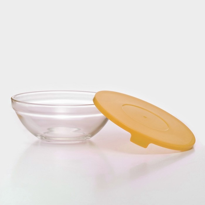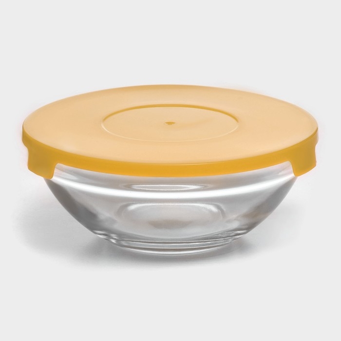 Набор стеклянных салатников Доляна «Классика» с крышками, 5 предметов: 900 мл (17×7,6 см), 500 мл (16×6 см), 350 мл (12,5×5,4 см), 200 мл (10,5×4,5 см), 130 мл (9×3,7 см), цвет жёлтый