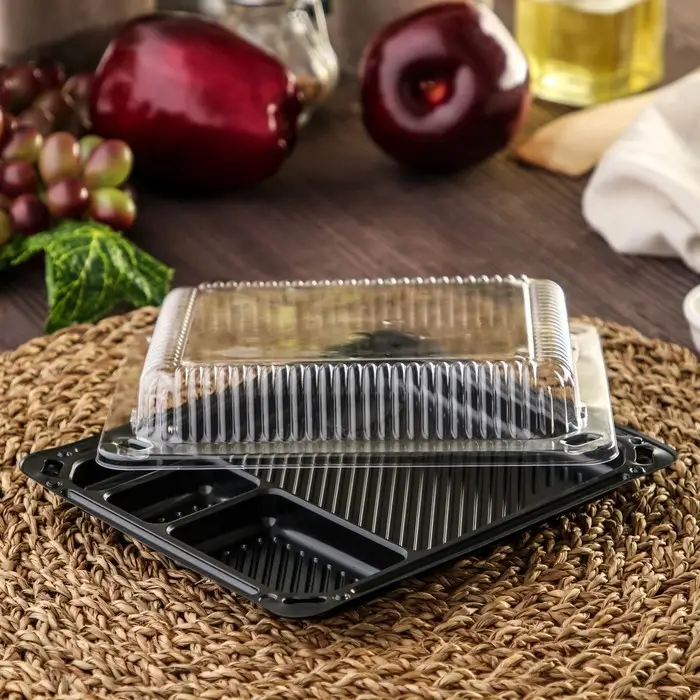 Контейнер пластиковый с крышкой одноразовый для суши Л-18, 18,4×16,2×3,8 см, внутренний 16×13,7×3,6 см, 770 мл, чёрный
