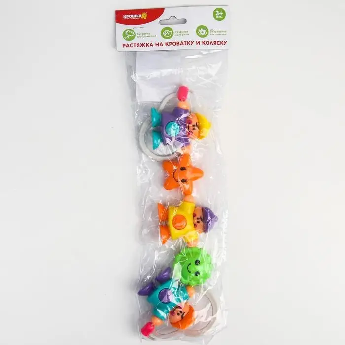 Игрушка-растяжка, которую можно подвесить на бортик детской кроватки, коляску или автокресло. К игрушке прикреплены развивающие элементы.Игрушка-растяжка сделана из безопасных материалов разного цвета и разной фактуры. Игрушка развивает тактильное и визуальное восприятие малыша, а так же служит любимой игрушкой крохи.